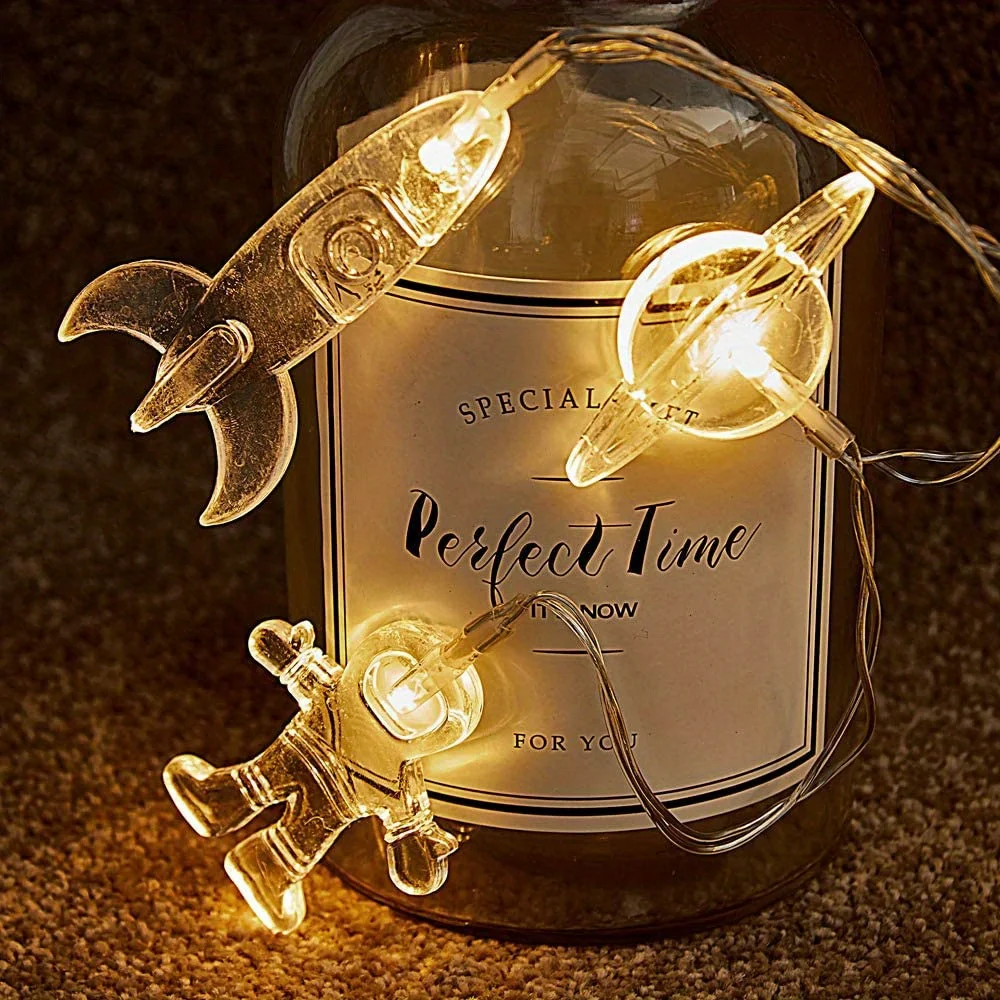 Astronaut Outer Space Themed LED Lights string 2M Party Supplies Kids Birthday Parties Decor Light Garland Baby Shower Planet