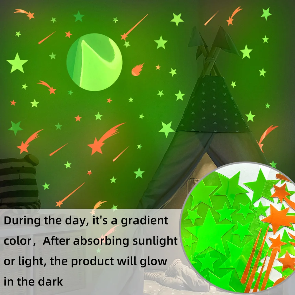 Colorful Luminous Stars Moon Wall Stickers For Kids Room Bedroom Decoration Home Decals Glow In The Dark Background Decor Mural