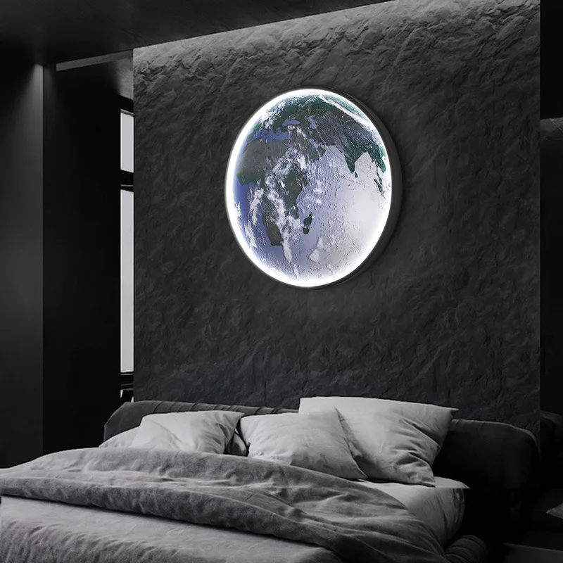 Home decor earth mural LED lamp Modern Moon Wall Sconce Black round Ceiling Light Living Room Bedroom stair aisle Mood Luminaire